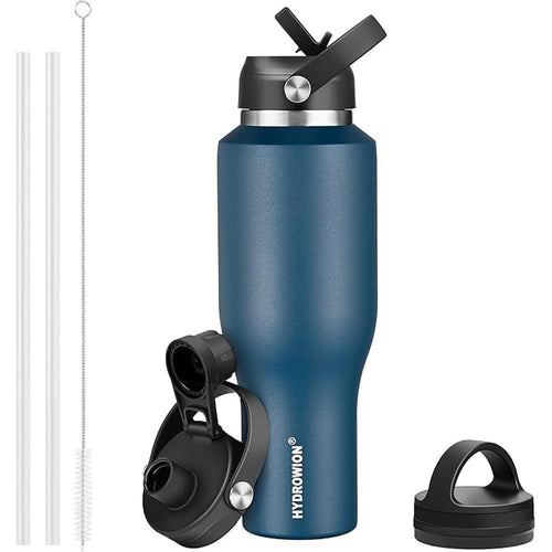 HYDROWION Water Bottles with Straw, 40oz Insulated Water Bottle fit in Car Cup Holder, Black Water Bottles with Straw Lid, Spout Lid and Flex Cap, Leakproof Travel Insulated Tumbler, Cobalt