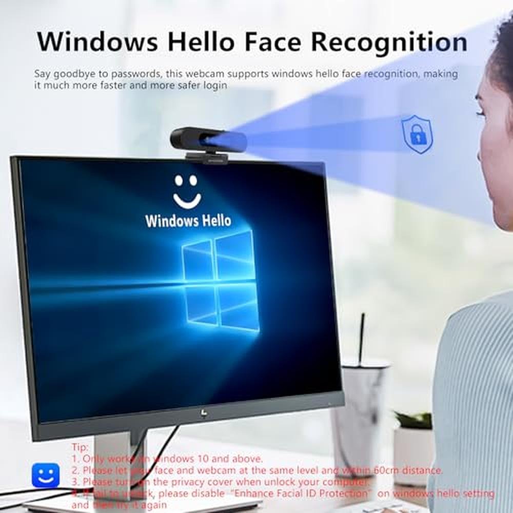 • • Windows Hello Facial recognition technology allows for secure and convenient access to your device via this webcam, providing an extra layer of security that traditional login methods cant match. (Tip Only works on windows 10 and above. If fail to unlock, please disable Enhanced face ID protection on windows hello setting then try it again.)