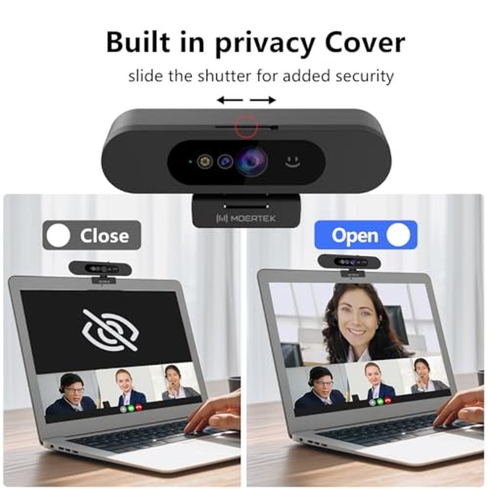 Moertek 1080P WINDOWS HELLO WEBCAM with Noise-reducing Mic, Plug Play, 90 FOV, Built-in Privacy Cover