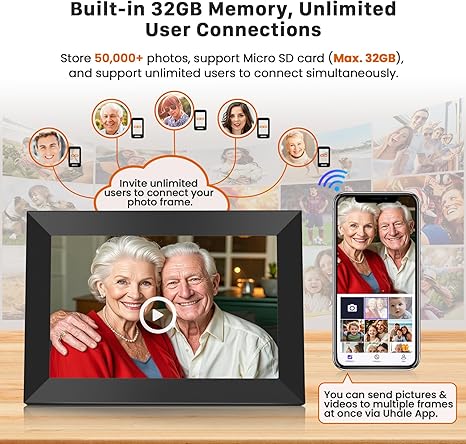 FANGOR 10.1 Inch WiFi Digital Picture Frame 1280x800 HD IPS Touch Screen, Electronic Smart Photo Frame with 32GB Storage, Auto-Rotate, Instantly Share Photos/Videos via Uhale App from Anywhere