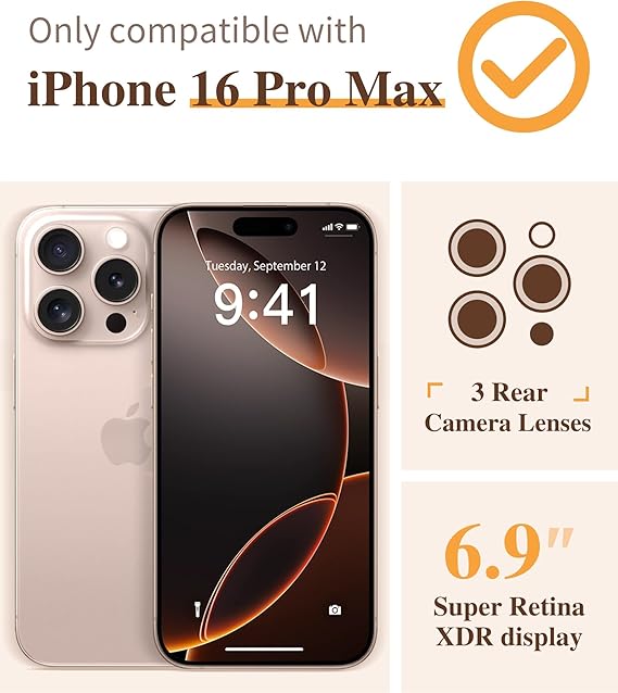 - • Compatibility 3-in-1 Kit ONLY compatible with iPhone 16 Pro Max (6.9-inch, 2024 release) Includes a clear floral case, 1pcs tempered glass screen protector, 1pcs lens protector Plz confirm the model before order (See image 2). Not compatible with iPhone 16 Pro