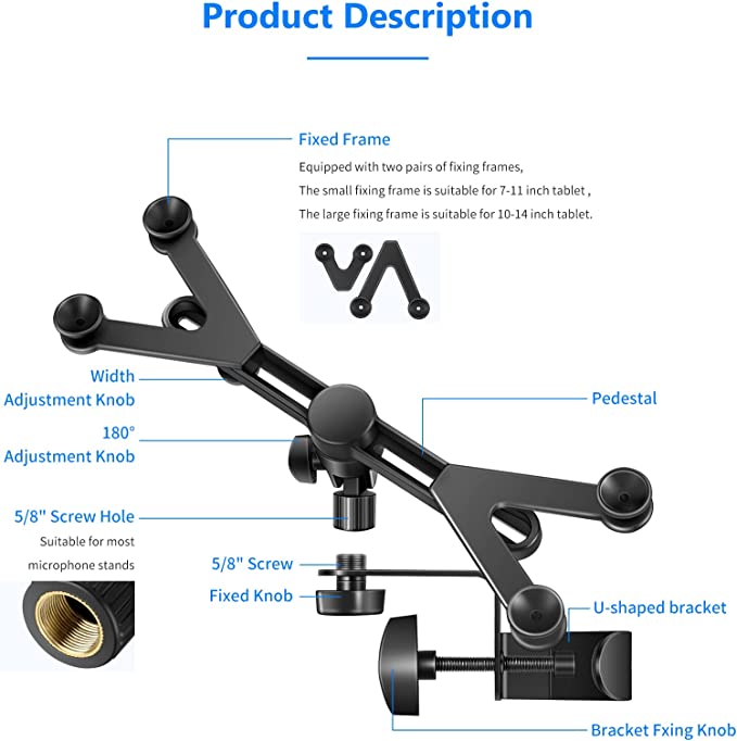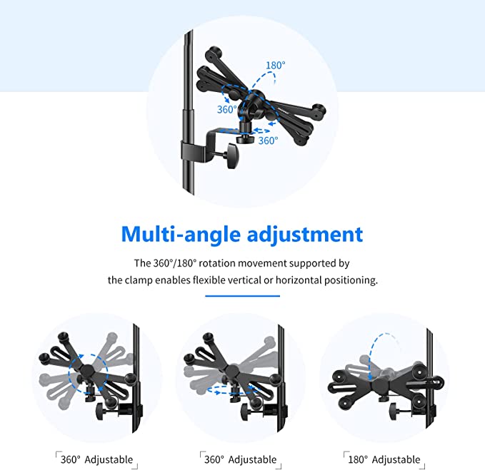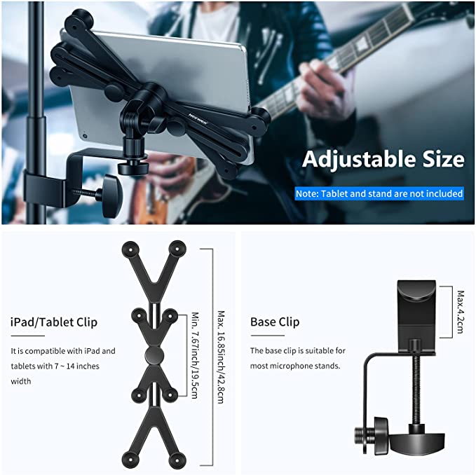 Neewer 7-14 inches Adjustable Tablet Holder Mount with 360 Degree Swivel Clamp for Connecting with Microphone Stand, Compatible with iPad, iPad Pro