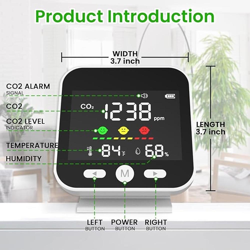 - • ?Importance of Air Quality Monitors?Carbon dioxide, temperature and humidity are constantly affecting human or plant ecological balance. The upgraded CO2 detector not only monitors CO2 levels, but also temperature and humidity in real time. Carbon dioxide concentrations affect human (and other organisms') respiration, If serious, life is threatening. So, we can maintain good health by monitoring the concentration of carbon dioxide in the air