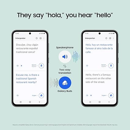 - • THEY SAY HOLA, YOU HEAR HELLO Now you can communicate freely with someone in another language Use the Interpreter feature on your Galaxy phone to hear real-time translations through your Galaxy Buds during face-to-face conversations¹