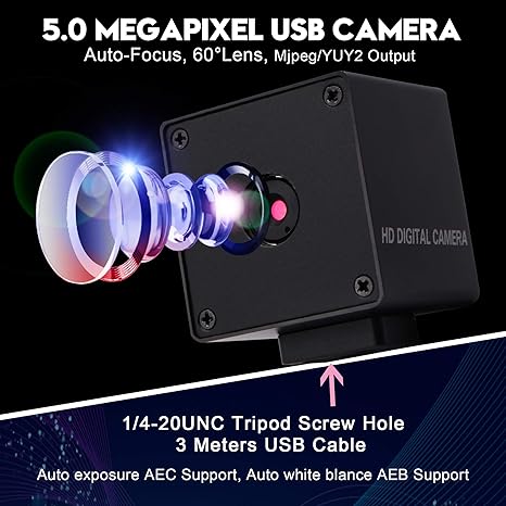 Specification: 5Megapixel 2592X1944 resolution Sensor 1/4" CMOS OV5640 5.0megapixel, Max. 2592(H)x1944(V)pixels Picture format MJPEG or YUY2 optional/USB Protocal USB2.0 HS/FS Auto exposure AEC Support/Auto white blance AEB Support Performance: 2592x1944 MJPEG 15fps YUY2 3fps 2048x 1536 MJPEG 15ps YUY2 3fps 1600x 1200 MJPEG 15fps YUY2 3fps 1920x 1080pixels MJPEG 15fps YUY2 3fps 1280x 1024MJPEG 15fps YUY2 7.5fps 1280x 720 MJPEG 30fps YUY2 7.5fps 1024x 768 MJPEG 30fps YUY2 15fps 800x 600 MJPEG 30fps YUY2 30fps 640x 480 MJPEG 30fps YUY2 30fps Adjustable parameters Brightness/Contrast/Color saturation /Definition/Gamma/WB Night vision optional, can choose IR board 5V power Voltage DC 5V/current 150mA/work temperature DEGREES(-20~70) Size 38X38mm, 32x32mm Support OS "WinXP/Vista/WIN7/WIN8/Linux with UVC/Mac-OS X 10.4.8 or later/Wince with UVC/Android 4.0 or above"