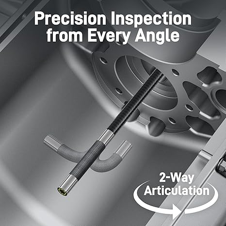- • Easily Maneuver Your View Tired of struggling with hard-to-reach areas during inspections? This two-way articulating borescope effortlessly navigates tight and complex spaces with its flexible and maneuverable probe. Enjoy crystal-clear visual feedback that saves you both time and money. Whether for automotive maintenance or household inspections, this tool transforms your inspection journey, making the process faster and easier than ever.