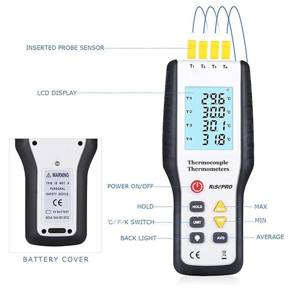 - • ACCURATE QUICK RESPONSE Readings are accurate and fast with 4-Channel K-Type Digital Thermometer Thermocouple Sensors