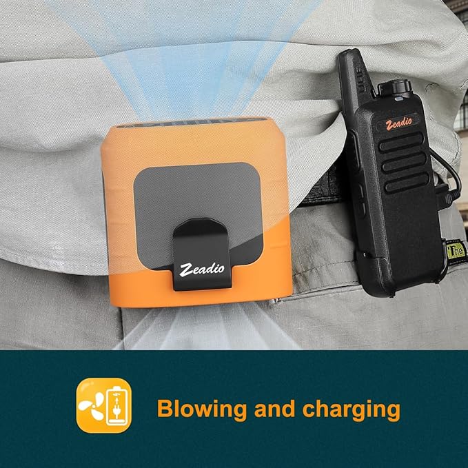 Zeadio Waist Clip Fan, 3 Spreed Operated Hands-free Wearable Necklace Fan, for Hot Flashes Home Office Travel Outdoor Sports